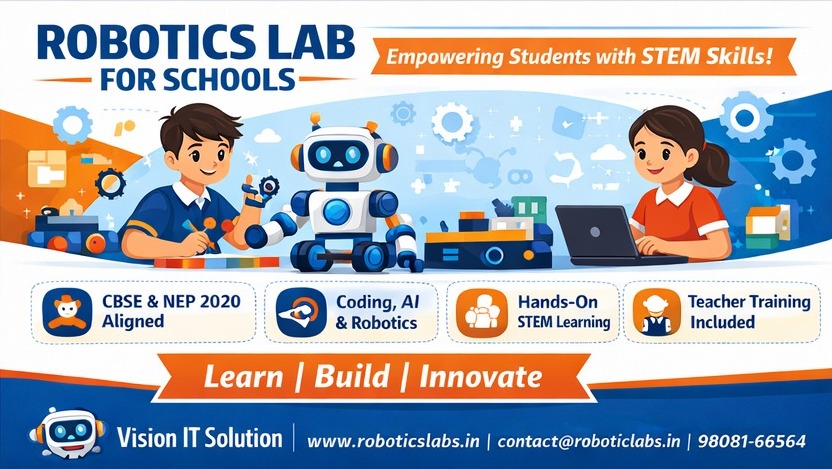 A Robotics Lab in schools transforms classrooms into innovation hubs where students learn by building, coding, and experimenting. Our Robotics Lab Setup is designed as per CBSE, NEP 2020, and STEM education guidelines, helping schools nurture creativity, logical thinking, and problem-solving skills.